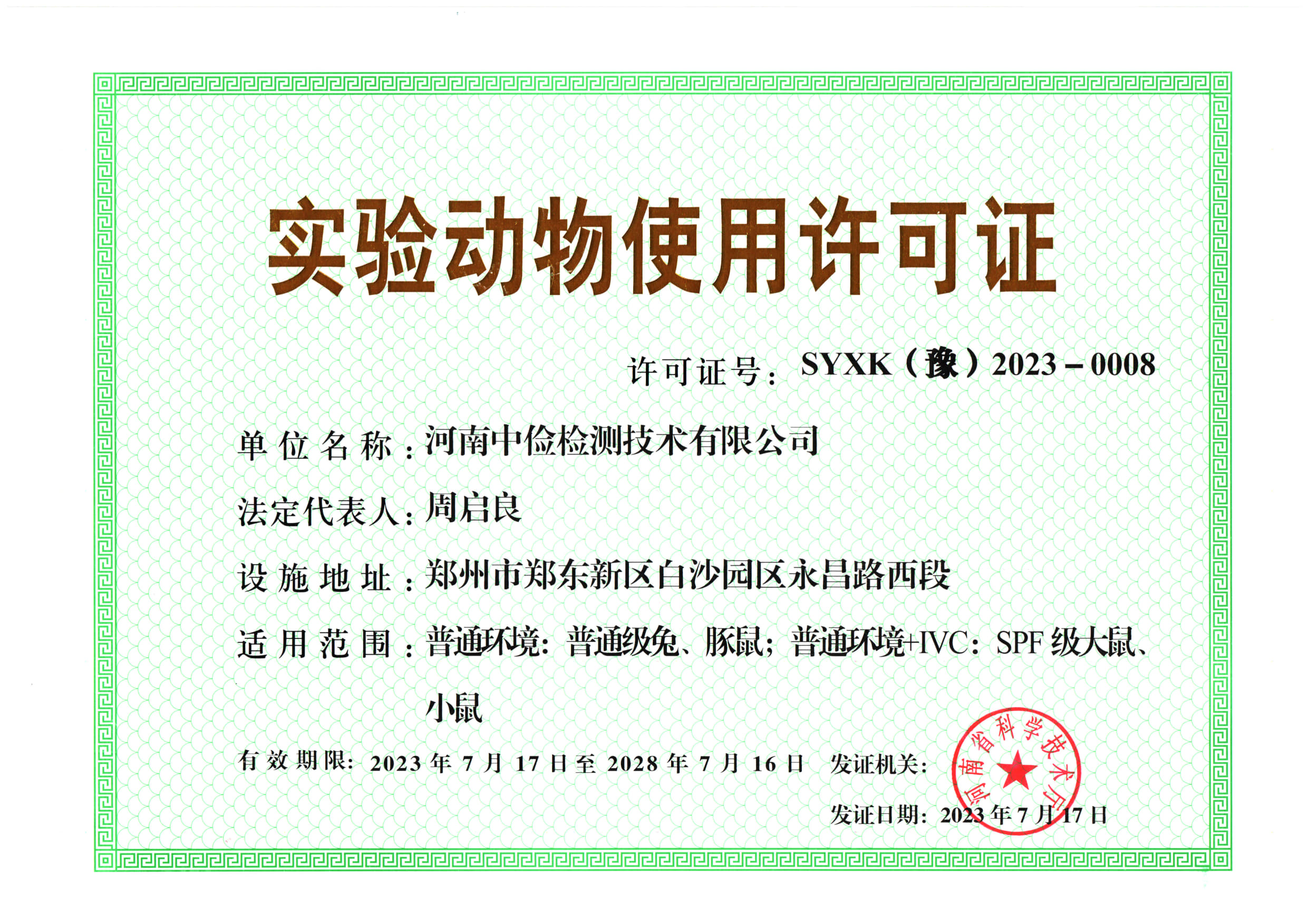 - 喜報(bào)!河南中儉檢測取得新的實(shí)驗(yàn)動(dòng)物使用許可證!
